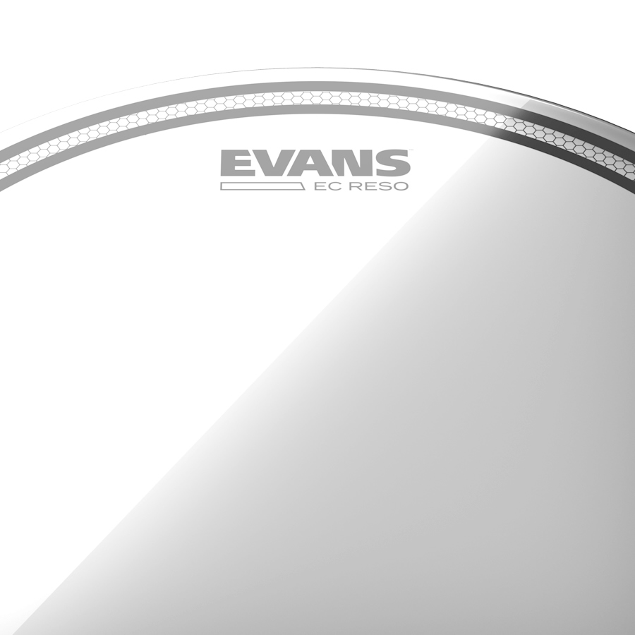The EC Resonant tom head is constructed from a single ply of 10 mil ultra-clear film augmented with the Evans EC ring.